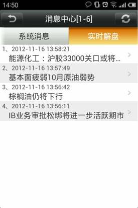 ◇ 再點(diǎn)擊“期貨日?qǐng)?bào)”就可以查看到多條期貨日?qǐng)?bào)新聞,選中其中一條,可以查看詳細(xì)的