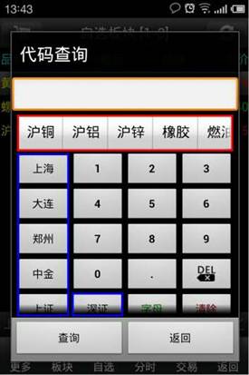 (2) 點(diǎn)擊“滬銅”,代碼查詢輸入框中會(huì)顯示出滬銅的所有品種。