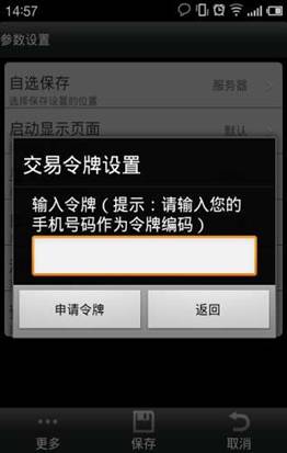 ◇ 點(diǎn)擊“確定”,進(jìn)入“交易令牌設(shè)置”界面。輸入令牌后,點(diǎn)擊“申請(qǐng)令牌”。